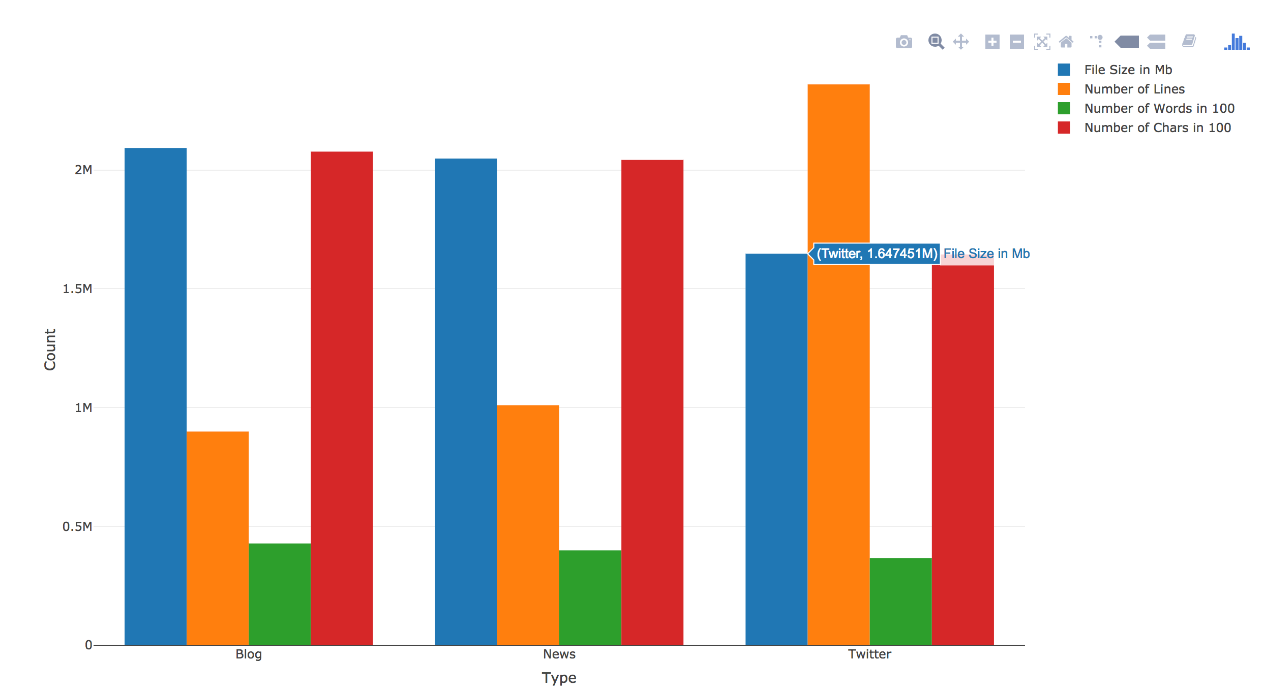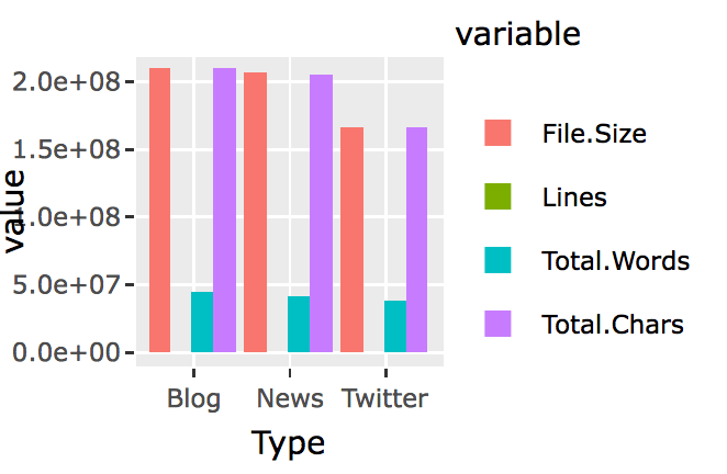 textStats <- data.frame('Type' = c("Blog","News","Twitter"),